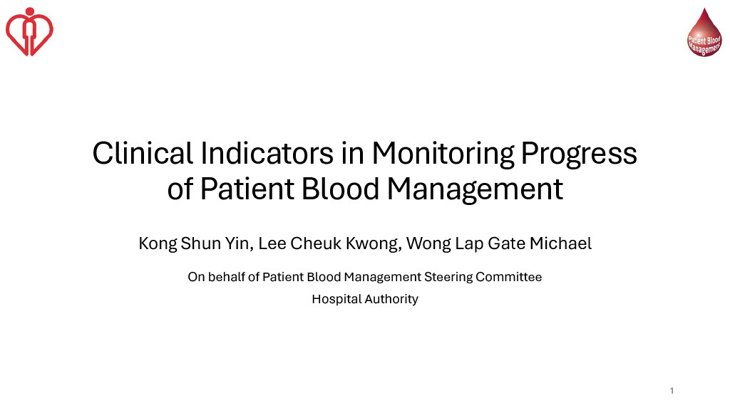 1. Hong Kong Red Cross Blood Transfusion Service 2. Quality & Safety Division, Hospital Authority Head Office On behalf of Patient Blood Management Steering Committee, Hospital Authority