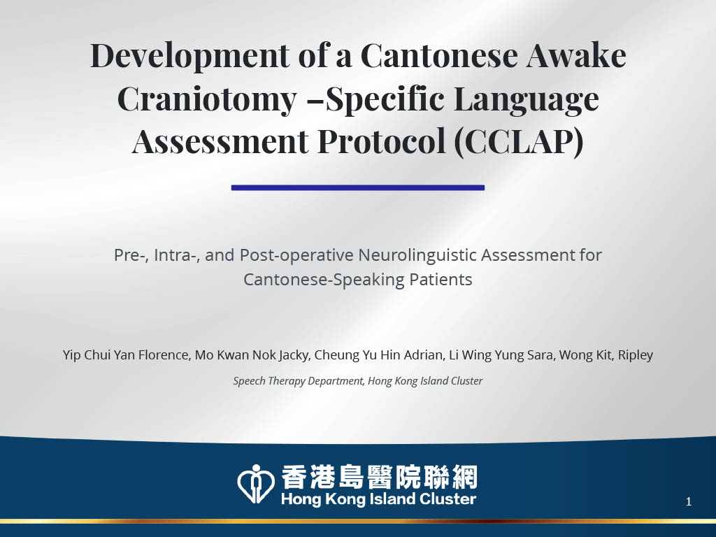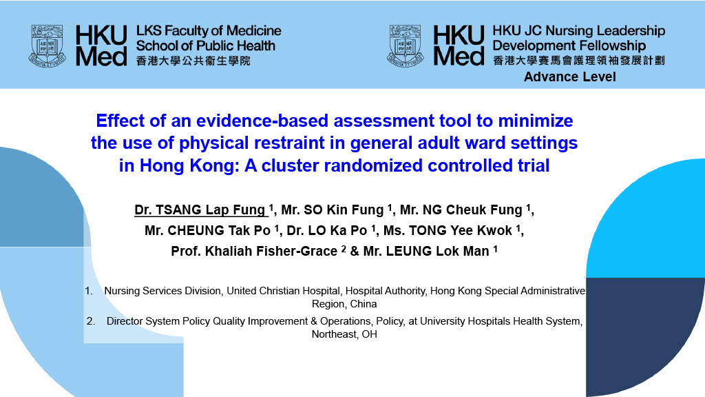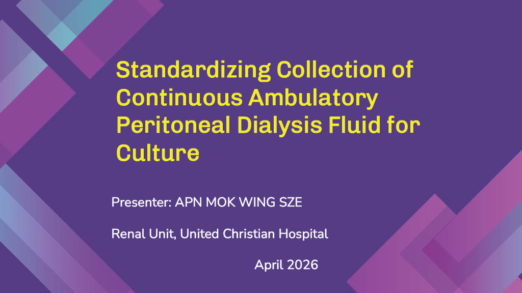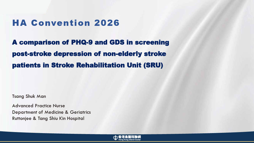 (1) Central Nursing Division, Princess Margaret Hospital, (2) Central Nursing Division, Caritas Medical Centre, (3) Central Nursing Division, North Lantau Hospital, (4) Central Nursing Division, Yan Chai Hospital, (5) Central Nursing Division, Kwai Chung Hospital, (6) Medicine & Geriatrics Department, Caritas Medical Centre, (7) Medicine & Geriatrics Department, Princess Margaret Hospital, (8) Central Sterile Supplies Department, Kowloon West Cluster, (9) Information Technology Division, (10) Community Nursing Service, Kowloon West Cluster, (11) Specialist Out-Patient Clinic, Princess Margaret Hospital, (12) Cluster Planning And Commissioning, Kowloon West Cluster, (13) Neurosurgery, Princess Margaret Hospital, (14) Infection Control Team, Princess Margaret Hospital, (15) Quality & Safety, Princess Margaret Hospital, (16) Family Medicine Clinic & Primary Healthcare, Kowloon West Cluster, (17) Pathology Department, Princess Margaret Hospital